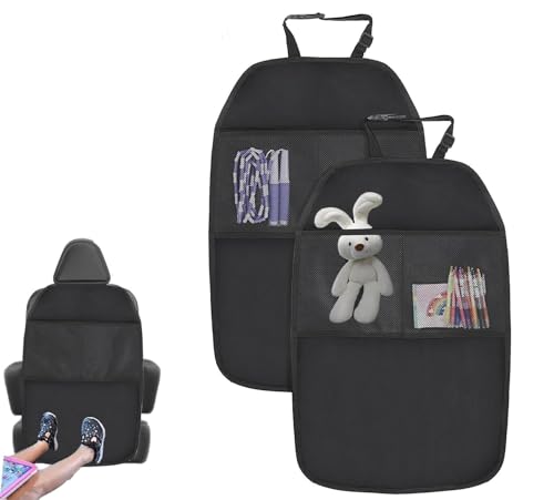 Back Seat Protector for Kids – 2pc Waterproof Car Seat Kick Mats & Organiser